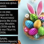 Ανακοίνωση – Κλειστά τα γραφεία του ΚΣ Μεγάλη Πέμπτη 09/04/2026 και θα ανοίξουν ξανλα την Πέμπτη 16/04/2026